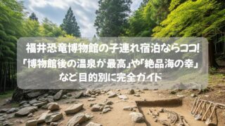 北陸 福井恐竜博物館の子連れ宿泊を120%楽しむ宿5選!「博物館後の温泉が最高」や「絶品海の幸」など目的別に完全ガイド 福井県立恐竜博物館への子連れ旅行なら宿選びで失敗しないで!この記事では、博物館後の疲れを癒す「温泉宿」から、福井ならではの「絶品海の幸」が味わえる旅館まで、目的別に厳選した5つの宿を徹底ガイド。あなたの家族にぴったりの宿が必ず見つかります。 2025.09.17 北陸