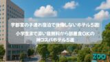 ホテル名 | 添い寝無料(目安) | 食事スタイル | 子連れ向け設備 | ここがポイント! |