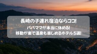 九州 長崎の子連れ宿泊ならココ!パパママが本当に休める!移動が楽で温泉も楽しめるホテル5選! 長崎への子連れ宿泊なら必見!「夜景」「温泉」「ハウステンボス近さ」など目的別に、家族旅行が最高に楽になるホテル5選を徹底比較。赤ちゃん連れに嬉しい和室のある宿から、島ごと遊べるリゾートまで、あなたの家族にぴったりの宿泊先が必ず見つかります。 2025.09.19 九州