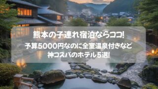 九州 熊本の子連れ宿泊ならココ!予算5000円なのに全室温泉付きなど神コスパのホテル5選! 熊本への子連れ宿泊なら必見!「温泉」「プール」「遊園地近さ」など目的別に、家族旅行が最高に楽になる神ホテル5選を徹底比較。全室温泉付きの宿からグリーンランドのオフィシャルホテルまで、あなたの家族にぴったりの宿泊先が必ず見つかります。 2025.09.19 九州